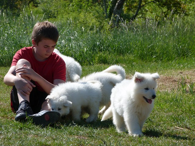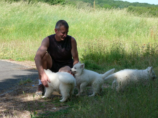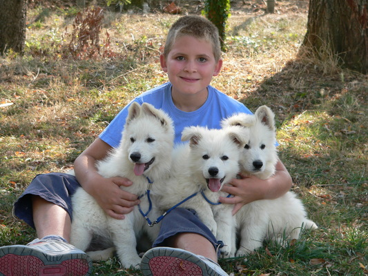A sept-huit semaines environ, nous faisons passer à nos petits des tests de caractère (type tests de Campbell), afin de mieux cerner leur personnalité et de conseiller les futurs maîtres sur le choix le plus approprié. ********** Nous sommes éleveur référencé auprès du Club de race, l'Association Française du Berger Blanc. Conformément à leurs directives, nous appliquons des Principes d'Elevage indispensables, visant à offrir aux futurs acquéreurs un maximum de garanties de bonne santé, de sélection rigoureuse dans le respect de nos reproducteurs.