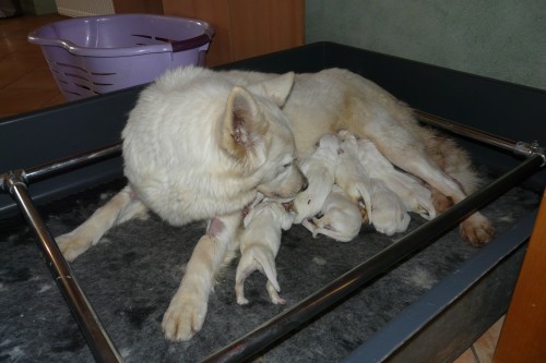 Après deux mois de gestation, voilà nos petits boudins blancs, au nombre de sept.